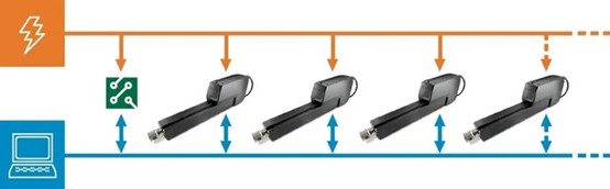 HD電動推桿因其4個同步運動和CAN總線的優(yōu)勢,可以使得Tribine聯(lián)合收割機(jī)設(shè)計團(tuán)隊通過編寫程序控制多個推桿的同步運動。