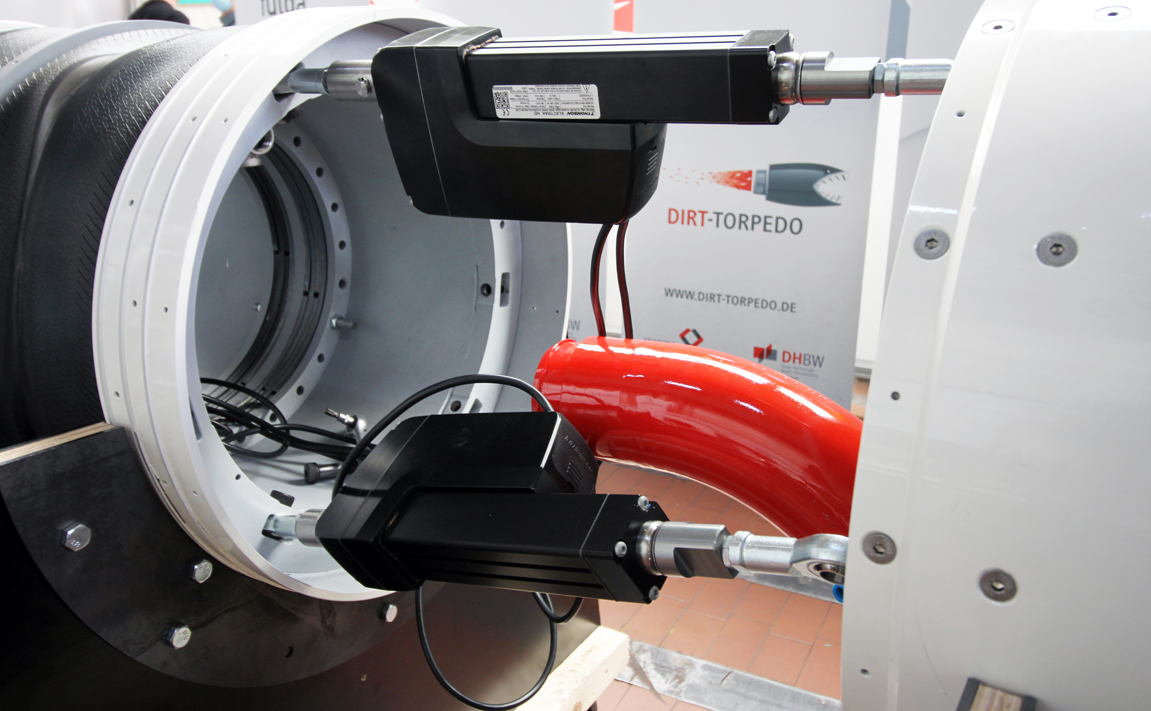 Thomson wird die in Mosbach ansässige Duale Hochschule Baden-Württemberg (DHBW) unterstützen, wo der ?Dirt-Torpedo‘ entwickelt wurde, ein von nur zwölf Wettbewerbskonzepten, die es in die engere Auswahl und damit ins Finale des Wettbewerbs geschafft haben. Treibende Kraft dieser Entwicklung ist die Idee einer schnellen, präzisen und vielseitig einsetzbaren Tunnelbohrmaschine. Die Bohrmaschine, deren Konstruktion und Funktionsweise an einen Regenwurm erinnert, verfügt über drei für die Fortbewegung zuständige Vortriebseinheiten. Hier kommen die Thomson Electrak HD-Aktuatoren zum Einsatz.