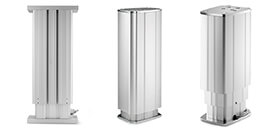 Thomson升降柱專為平穩、安靜和快速運行而設計,具有出色的伸縮比,因此占地空間雖小但運動范圍非常大。這些靈活的直線運動解決方案基于相互滑入的陽極氧化擠出鋁型材。它們具有高力矩能力,且支撐能力與結構尺寸比值大,既可使用一個單元支撐一個集中載荷,也可將幾個單元聯接在一起使用,從而可實現多種設計配置。