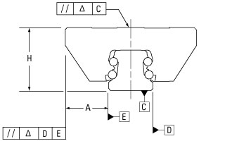 注意:安裝公差應包含導軌底部到滑架頂部中心(H)以及從導軌基準邊緣到滑架基準邊緣(A)的公差。因此,精度等級較低的軸承更需要精確地安裝。導軌底部到滑架頂部中心(H)導軌基準邊緣到滑架基準邊緣(A)。