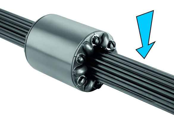 可以。滾珠花鍵可承受徑向負載,但是它們的主要用于是傳遞轉矩。產品目錄中只列出了轉矩額定值。對于需要高徑向負載能力的應用,帶60 Case?軸系的滾珠襯套軸承或profile rail導軌是更好的選擇。對于需要轉矩和徑向負載能力的滾珠花鍵應用,請提交應用信息以供評估。